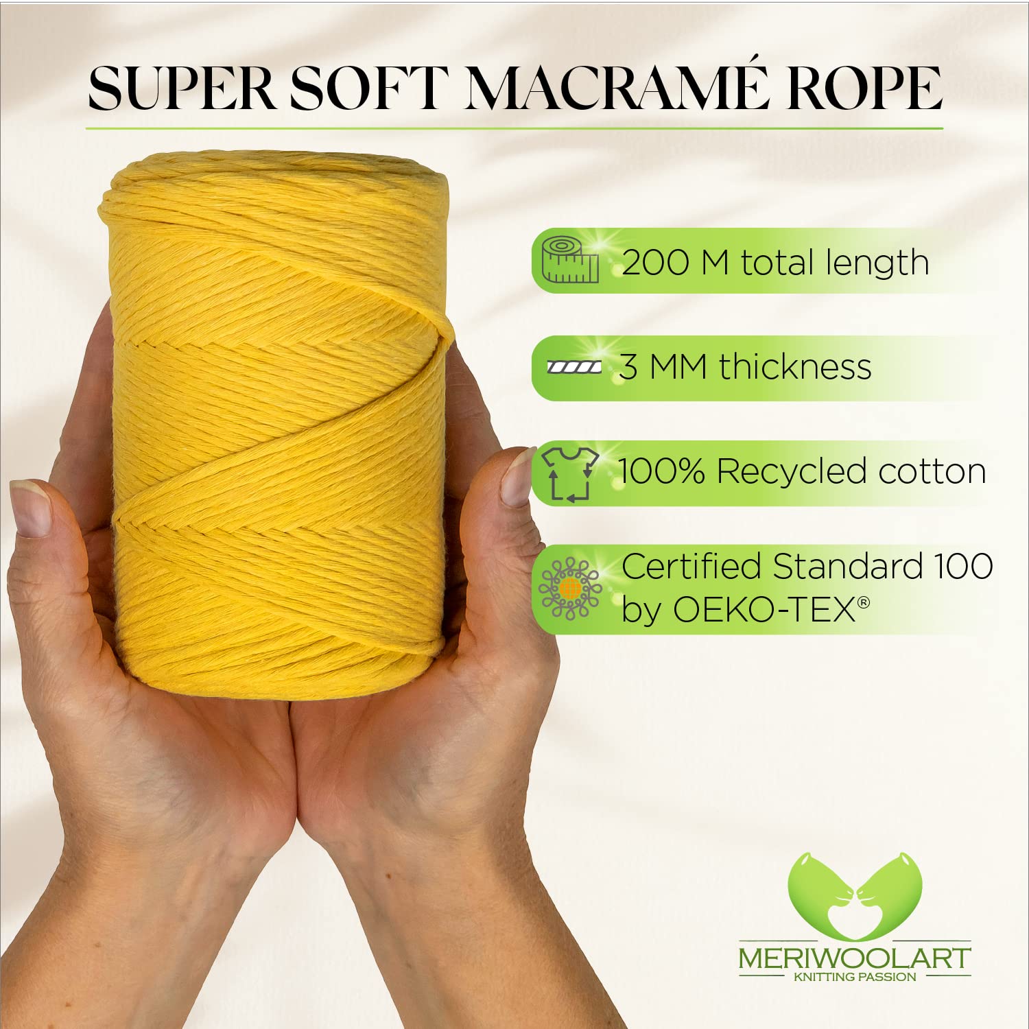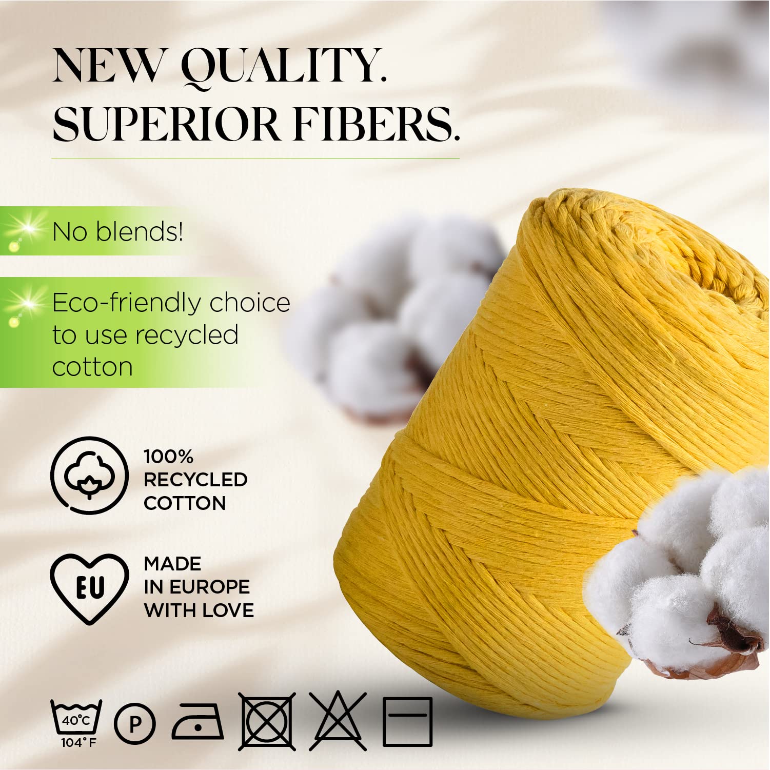 - SUPER SOFT COTTON YARN. 100% recycled Oeko-Tex certified cotton. Gently twisted macrame thread.