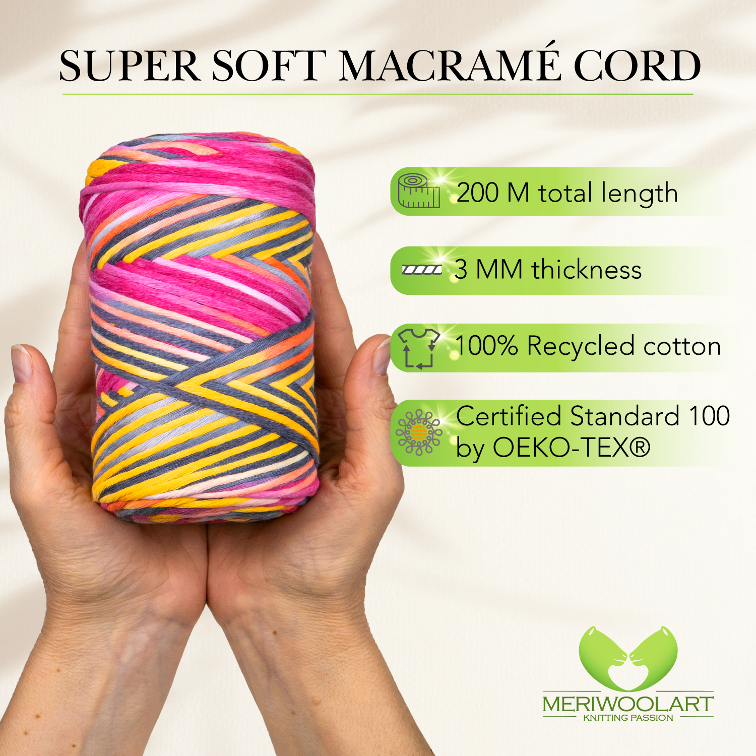 - SUPER SOFT COTTON YARN. 100% recycled Oeko-Tex certified cotton. Gently twisted macrame thread.