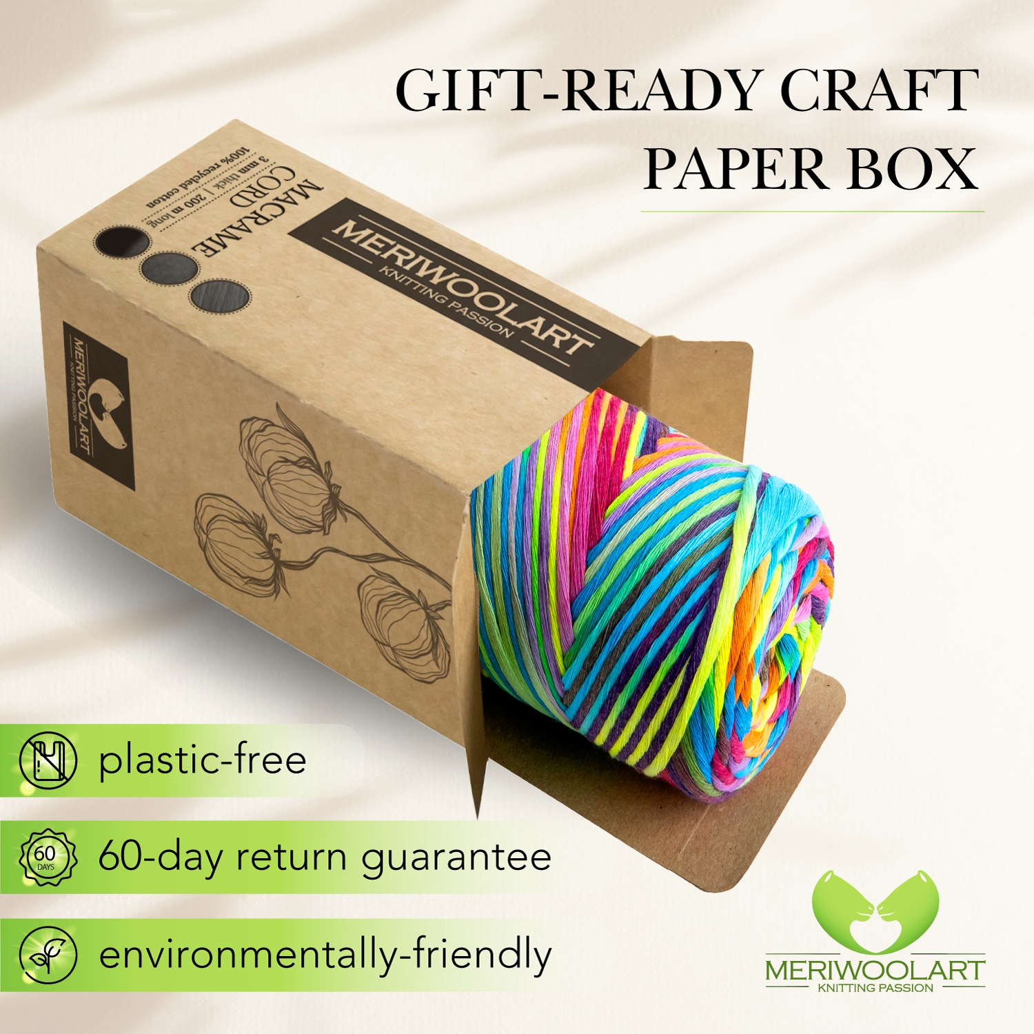 - Our natural cotton yarn is packed in a natural paper box and is a thoughtful gift for environmentally conscious friends and relatives.