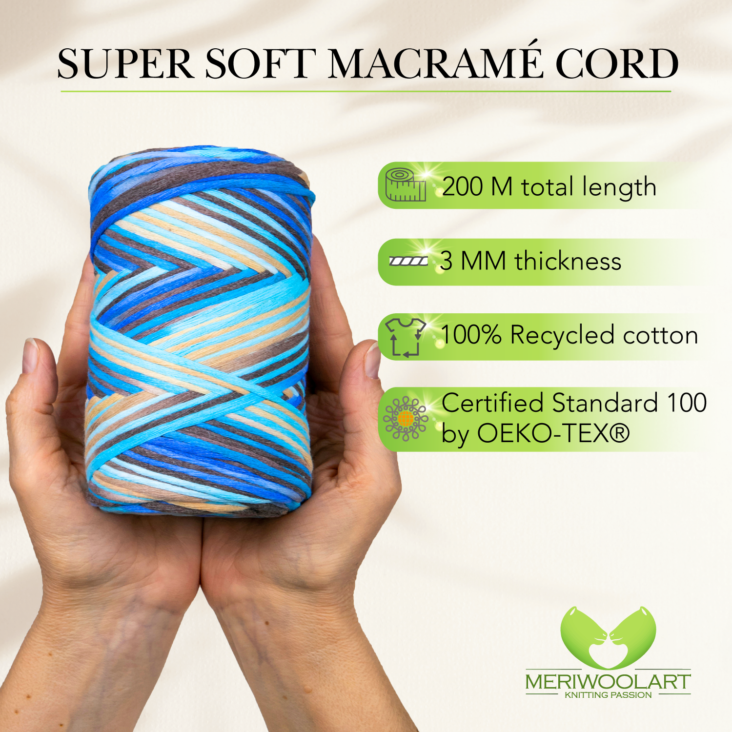 - SUPER SOFT COTTON YARN. 100% recycled Oeko-Tex certified cotton. Gently twisted macrame thread.