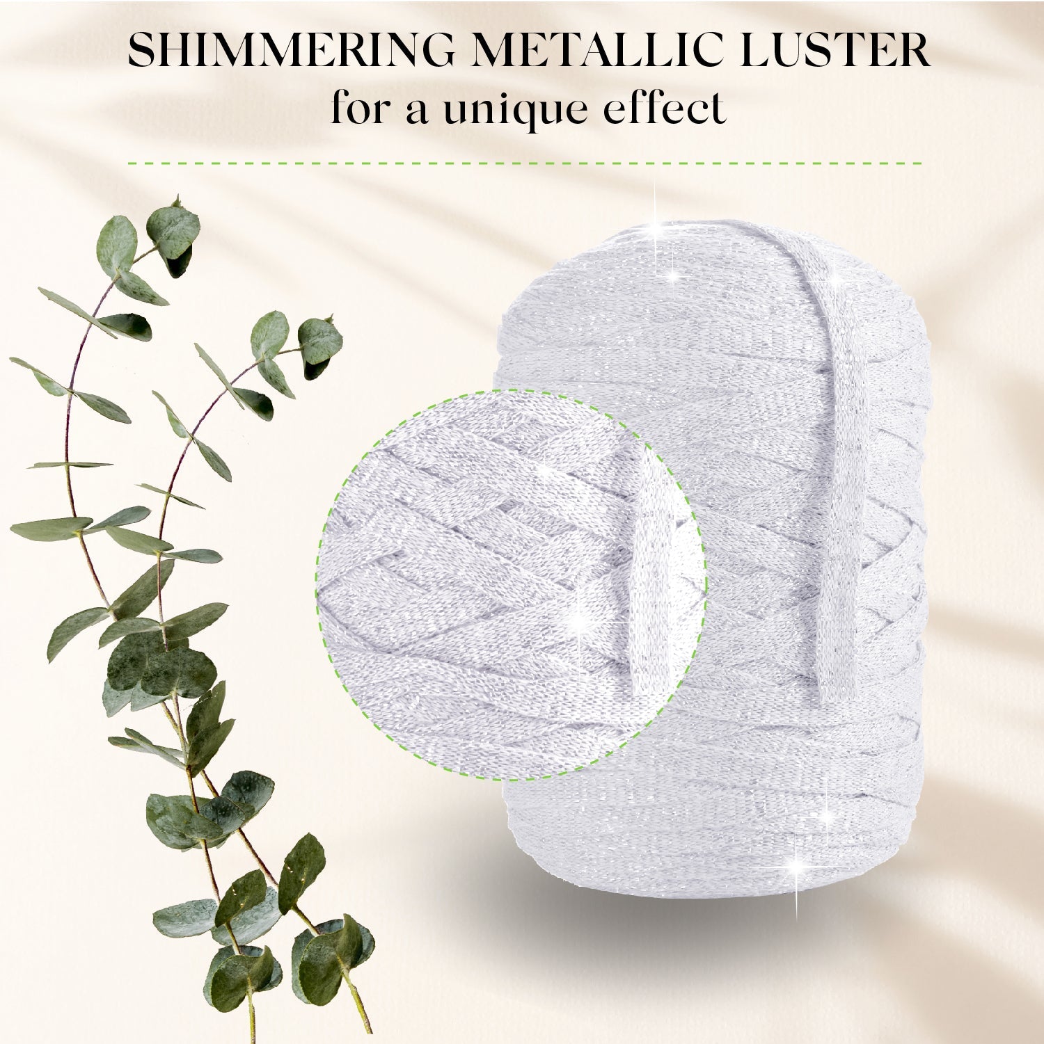 - A perfect length of 125 m of 10 mm thick cotton lurex ribbon guarantees enough material for a 90 cm long scarf (250 g).