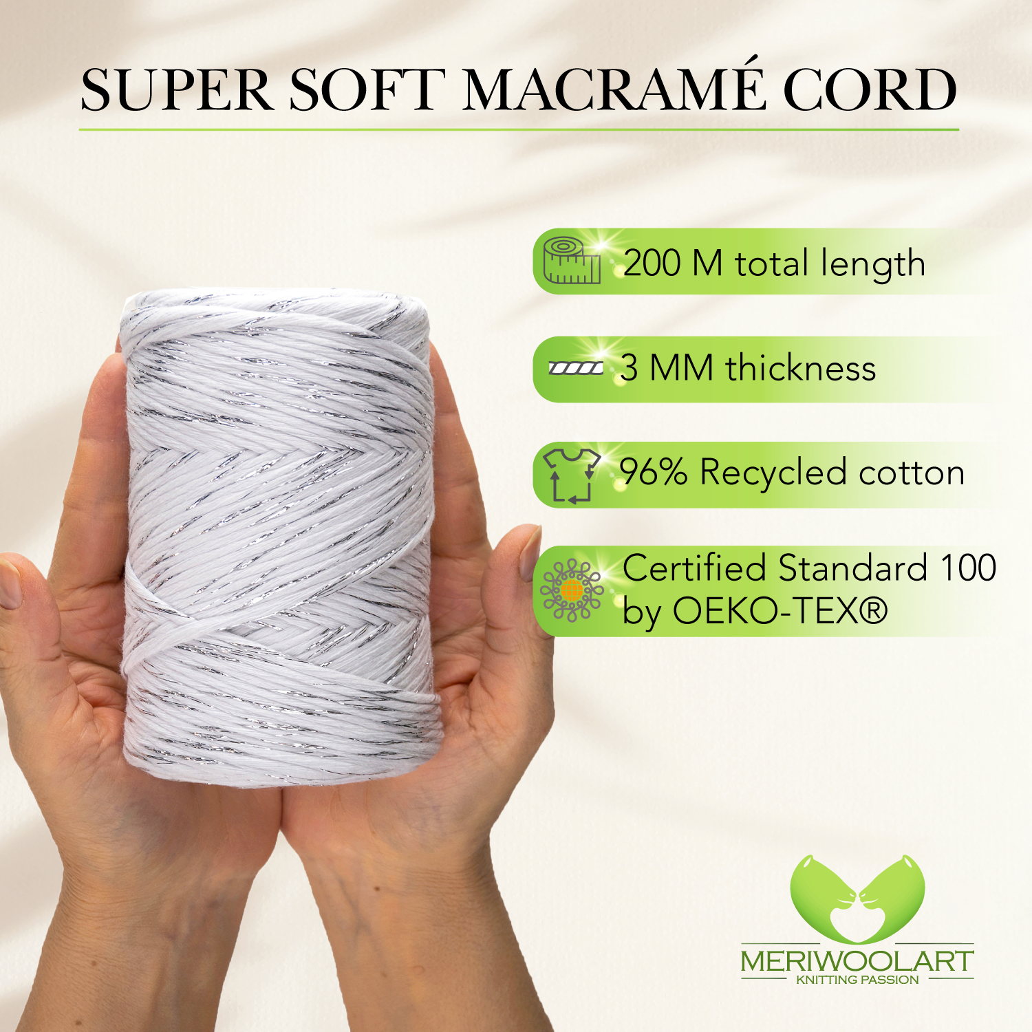 - SUPER SOFT COTTON YARN. 97% recycled Oeko-Tex certified cotton. Gently twisted macrame thread.