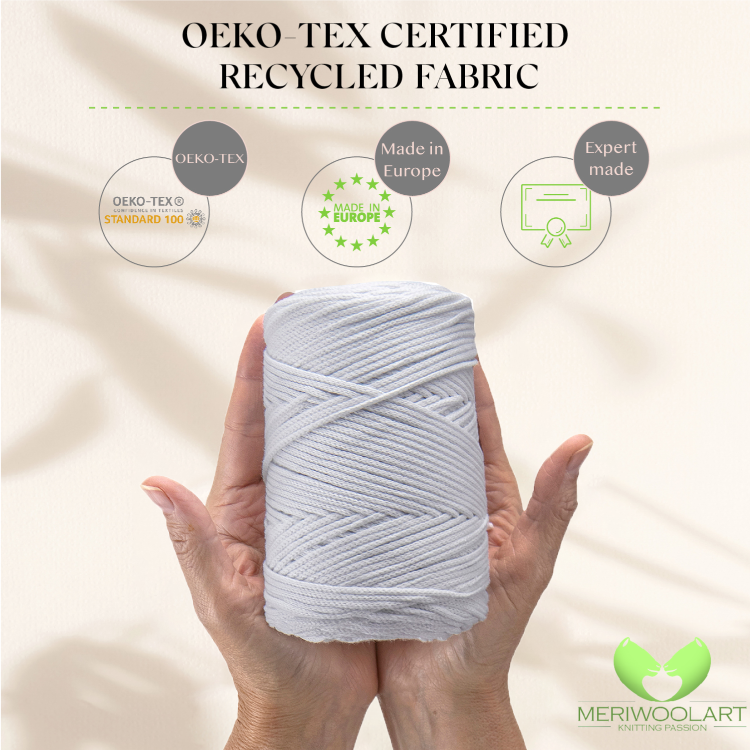 Our macramé cord 2mm - 250m is made from the highest quality recycled cotton rope.