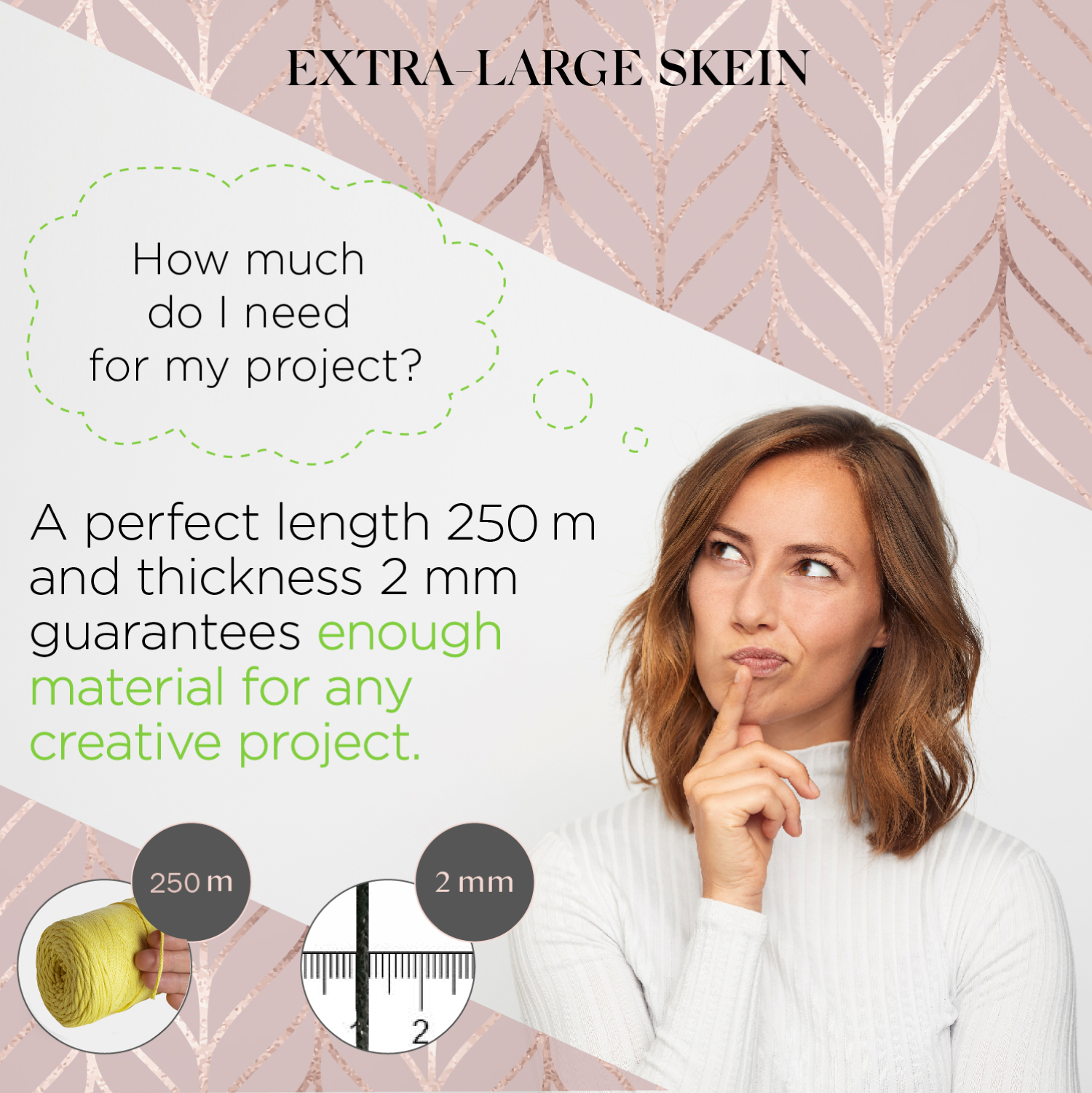Our macramé cord 2mm - 250m is made from the highest quality recycled cotton rope.