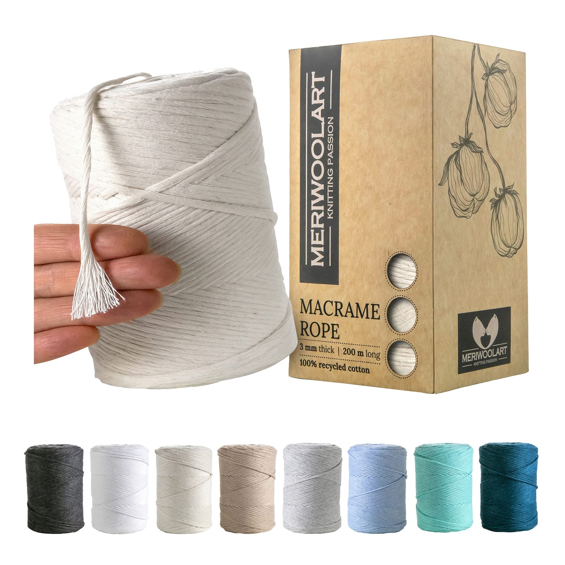 - SUPER SOFT COTTON YARN. 100% recycled Oeko-Tex certified cotton. Gently twisted macrame thread.