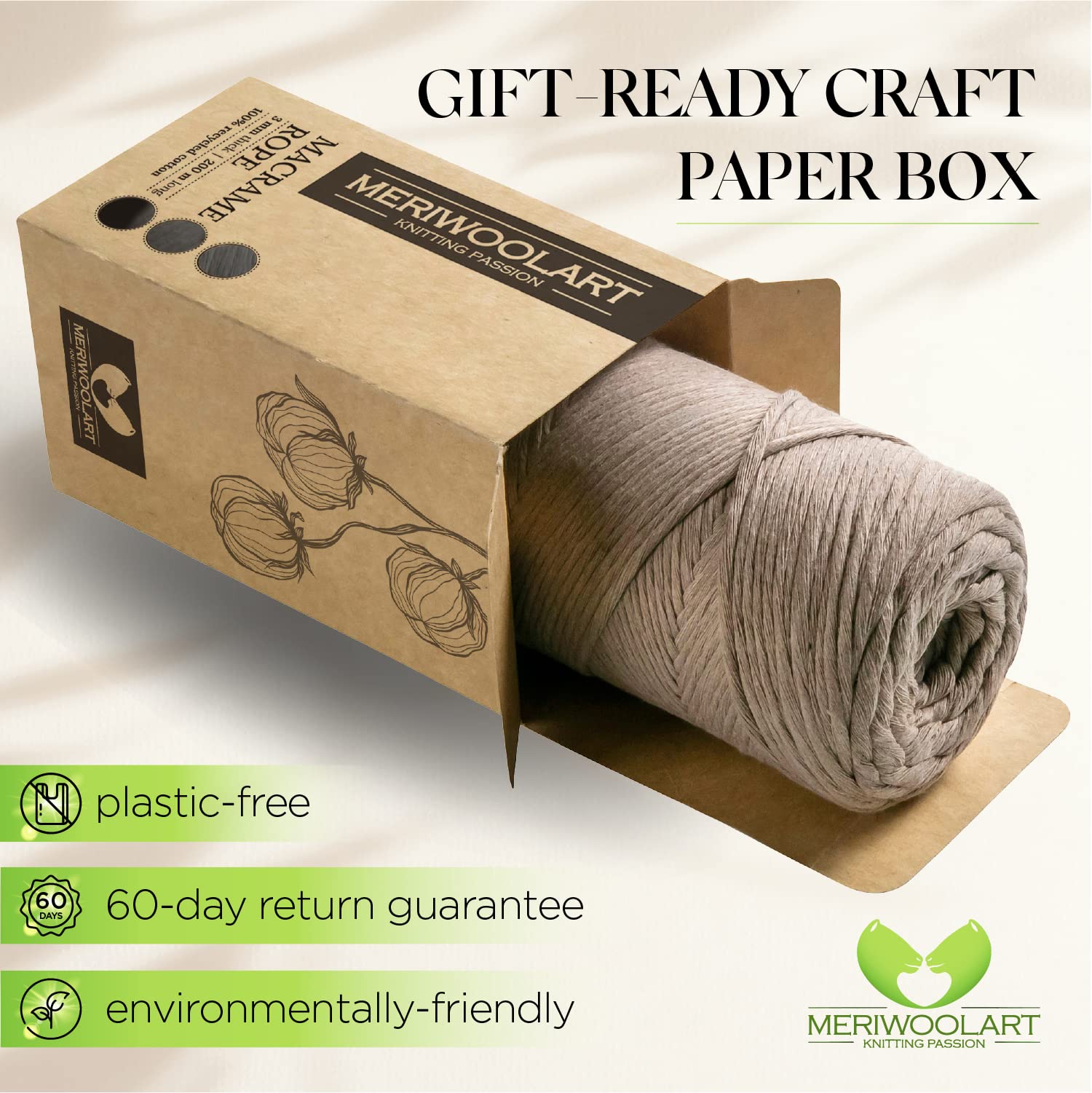 - Our natural cotton yarn is packed in a natural paper box and is a thoughtful gift for environmentally conscious friends and relatives.