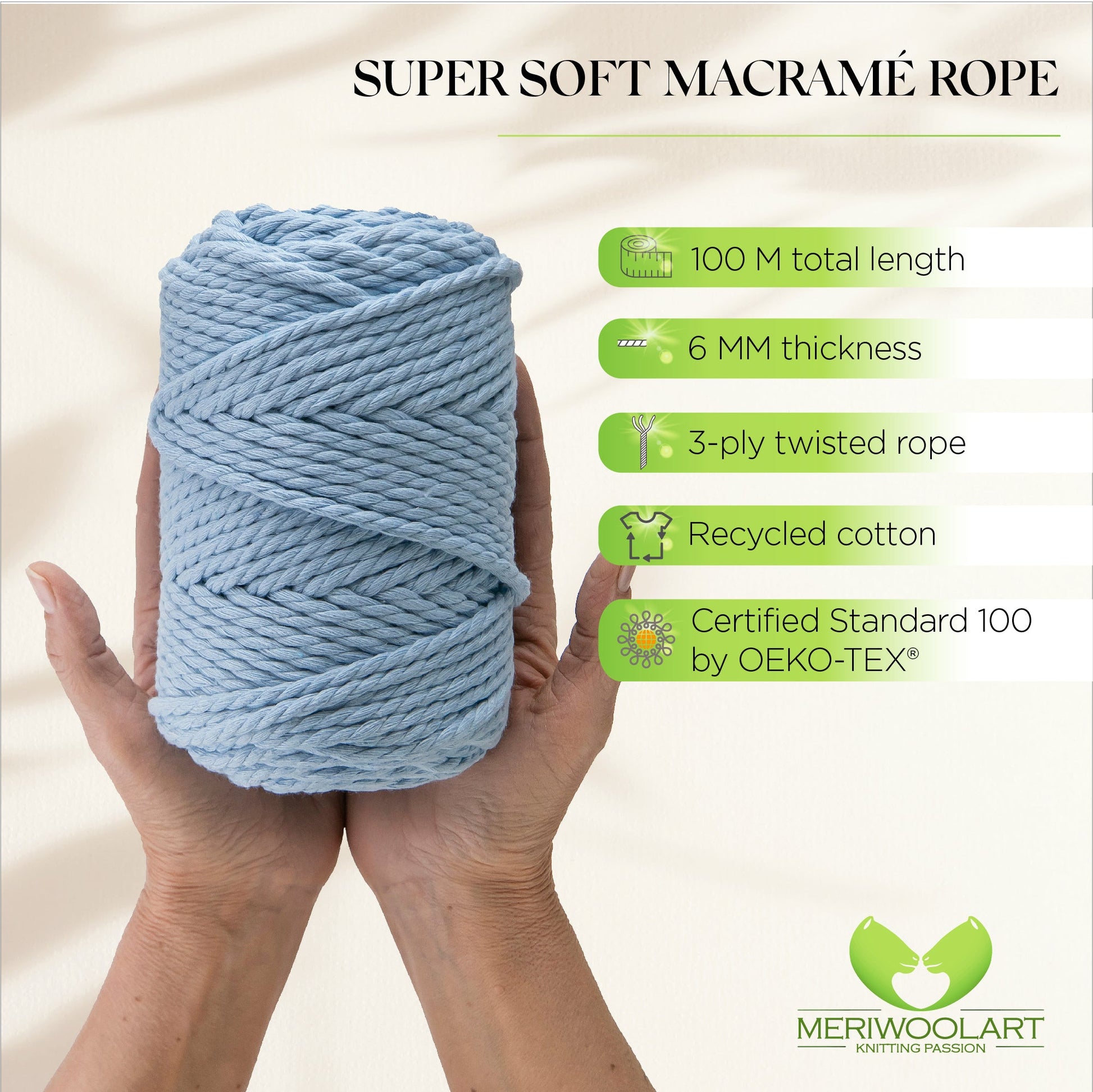 BABY BLUE MACRAMÉ ROPE 6 MM, 100 M