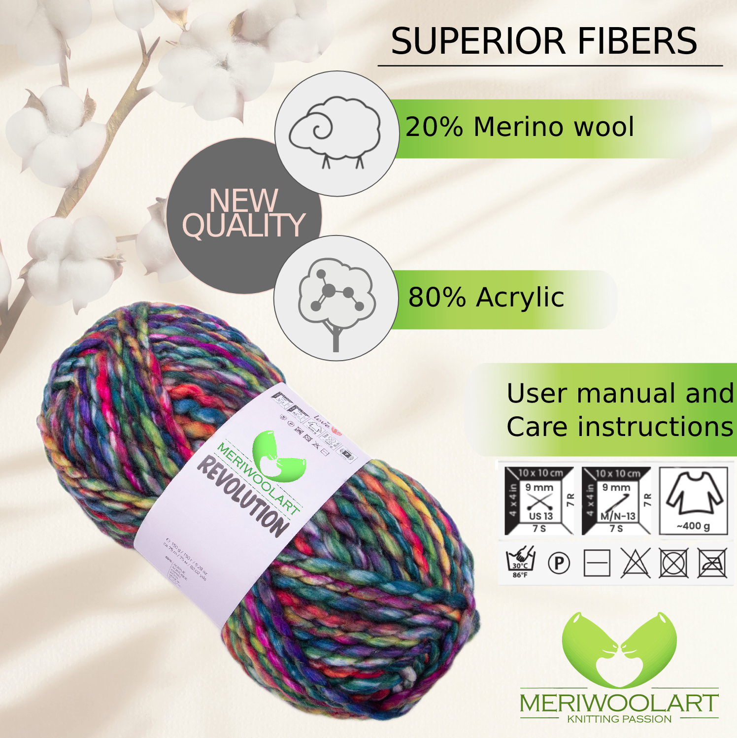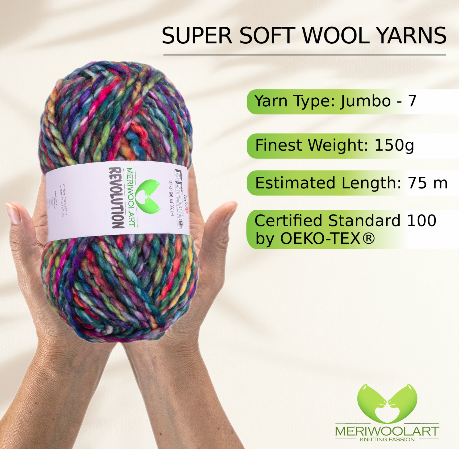- 20% of merino wool fibre makes it one of the most luxurious giant yarn you can buy. If you want the softest merino wool, this is the one.