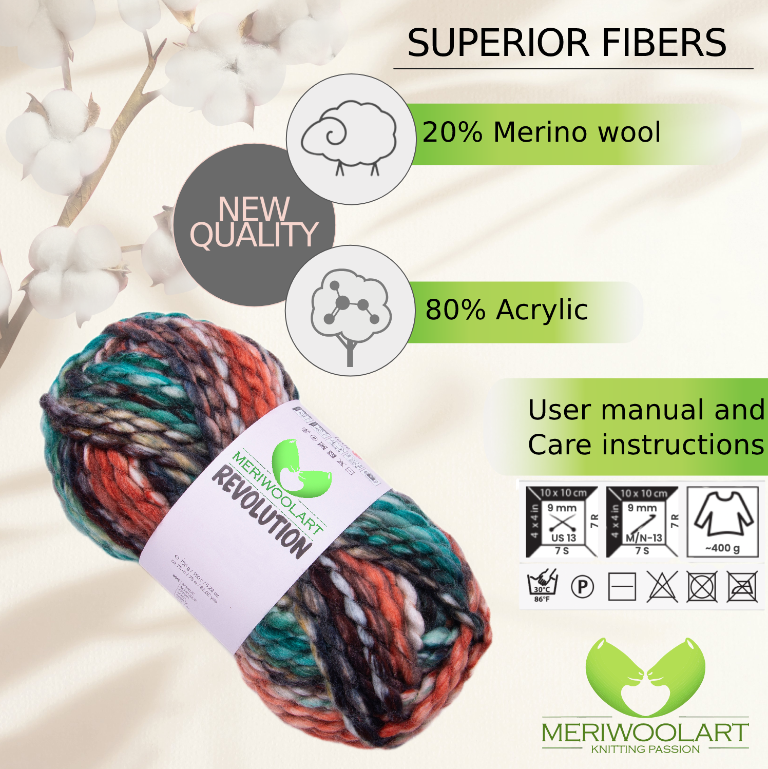 - 20% of merino wool fibre makes it one of the most luxurious giant yarn you can buy. If you want the softest merino wool, this is the one.