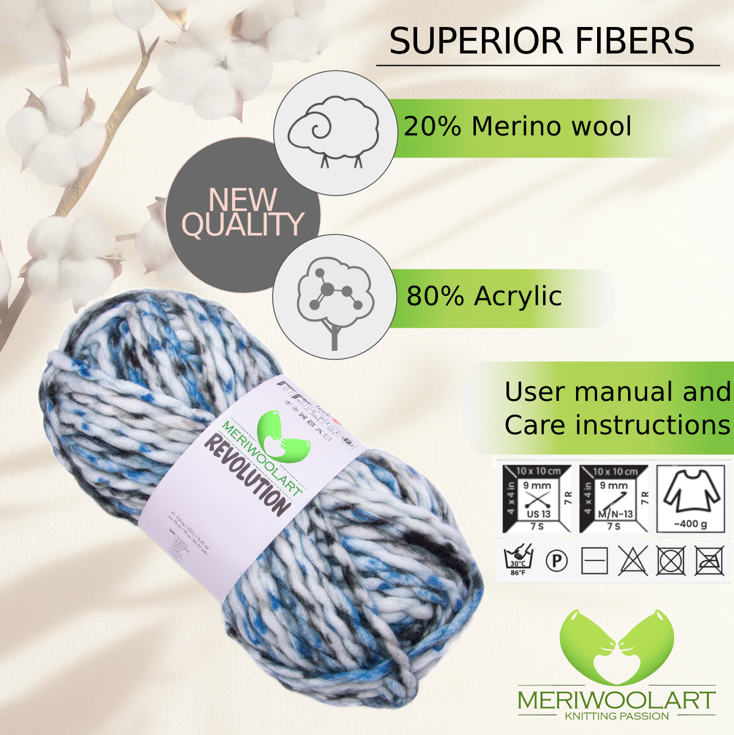 - 20% of merino wool fibre makes it one of the most luxurious giant yarn you can buy. If you want the softest merino wool, this is the one.