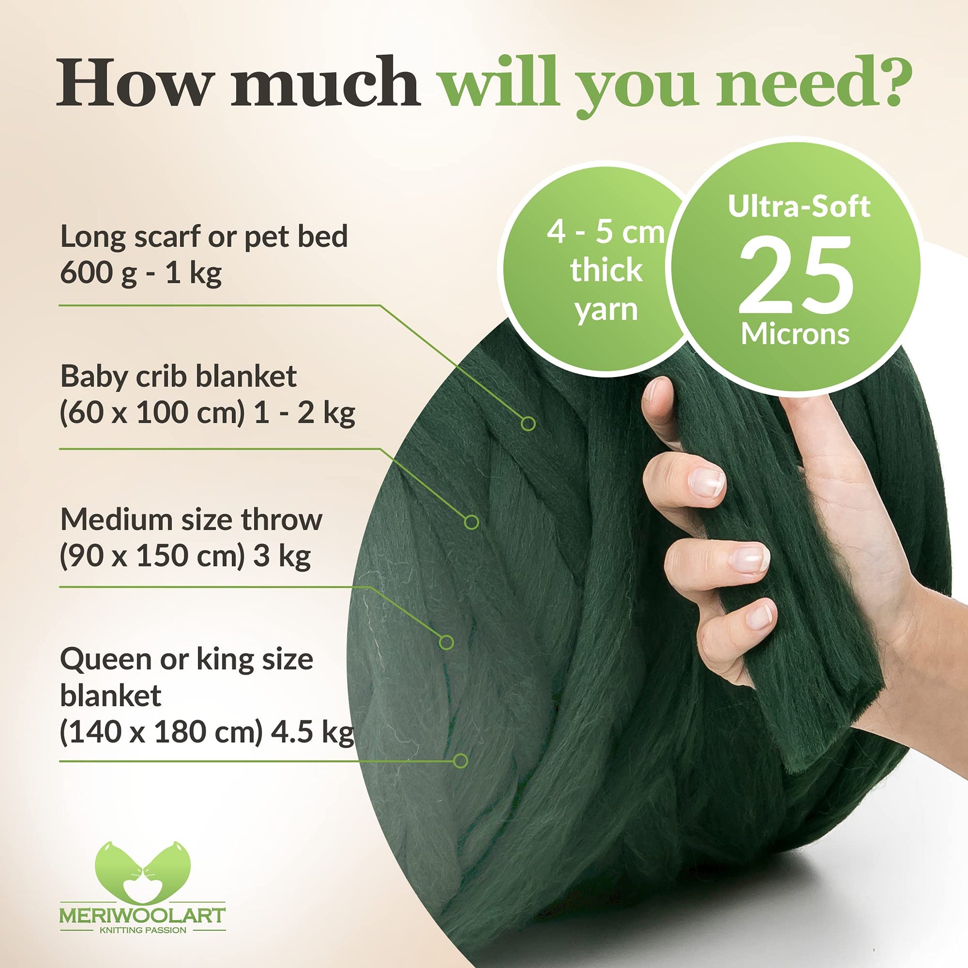 DARK GREEN CHUNKY MERINO WOOL 2 CM, 23 MICRON